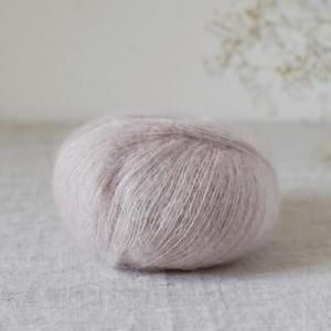 南アフリカ産のスーパーキッドモヘアとアルルメリノウールをブレンドし、光沢のあるシルクに巻きつけて起毛し、ボリューム感を出しています。