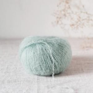 南アフリカ産のスーパーキッドモヘアとアルルメリノウールをブレンドし、光沢のあるシルクに巻きつけて起毛し、ボリューム感を出しています。