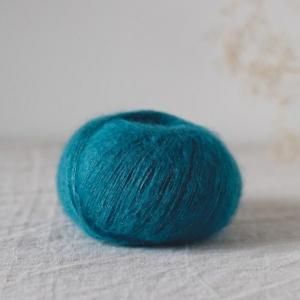 南アフリカ産のスーパーキッドモヘアとアルルメリノウールをブレンドし、光沢のあるシルクに巻きつけて起毛し、ボリューム感を出しています。